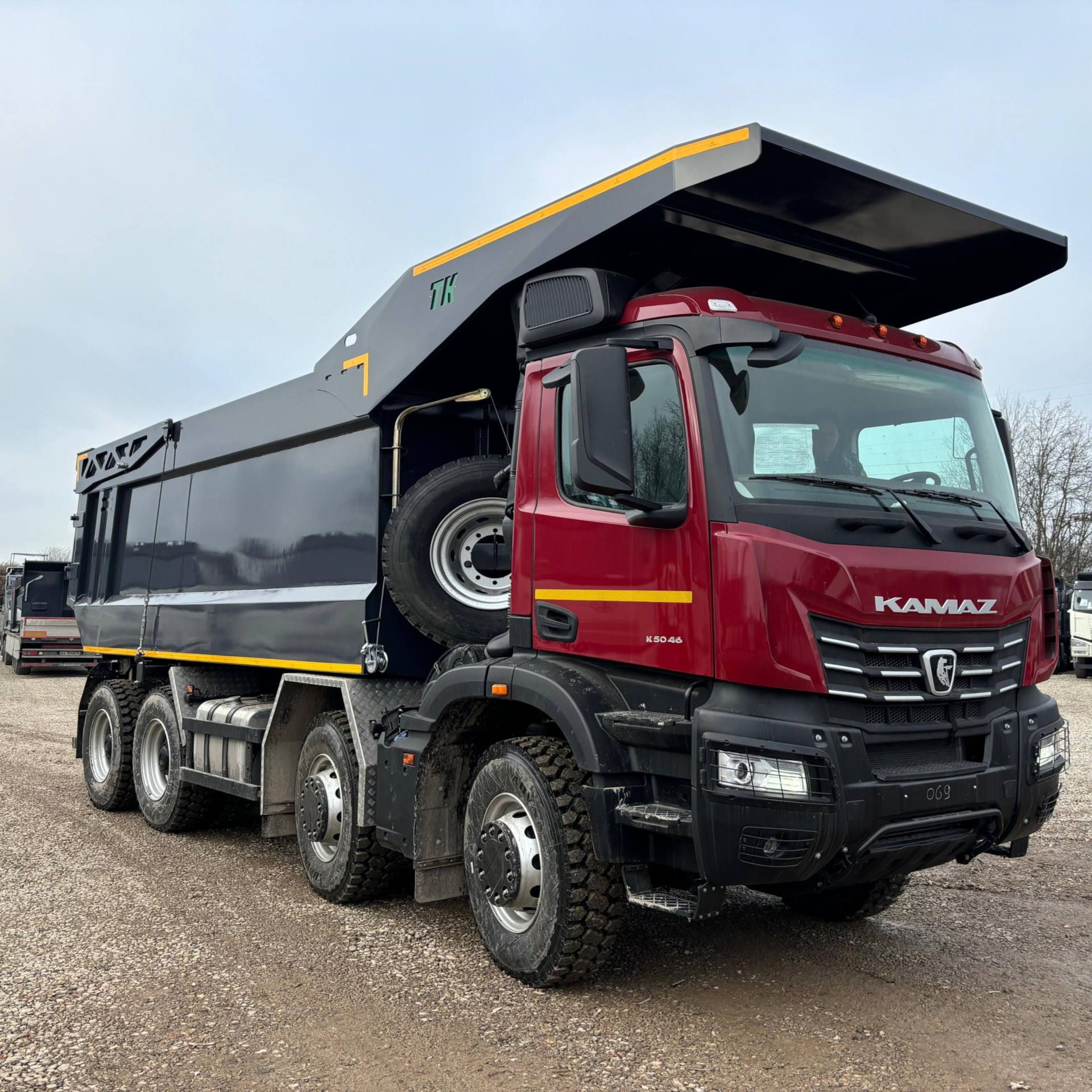 Особенностью самосвала является кузов ТОРГ-КОМС объёмом 25 м3, созданный специально для шасси КАМАЗ новейшего поколения К5. Дно кузова изготовлено из износостойкой стали марки HB 450 толщиной 15 мм: даже при постоянной работе с абразивными и тяжёлыми материалами (скальный грунт, песок, щебень) днище защищено от повреждений и прогибов. Благодаря этому потребитель экономит на ремонте и простоях. При этом боковые и передние стенки, задний борт выполнены из высокопрочной стали марки S700 толщиной 8 мм. Это гарантирует устойчивость к ударам и деформациям при погрузке экскаватором или погрузчиком, сохраняя геометрию кузова на протяжении всего срока службы.