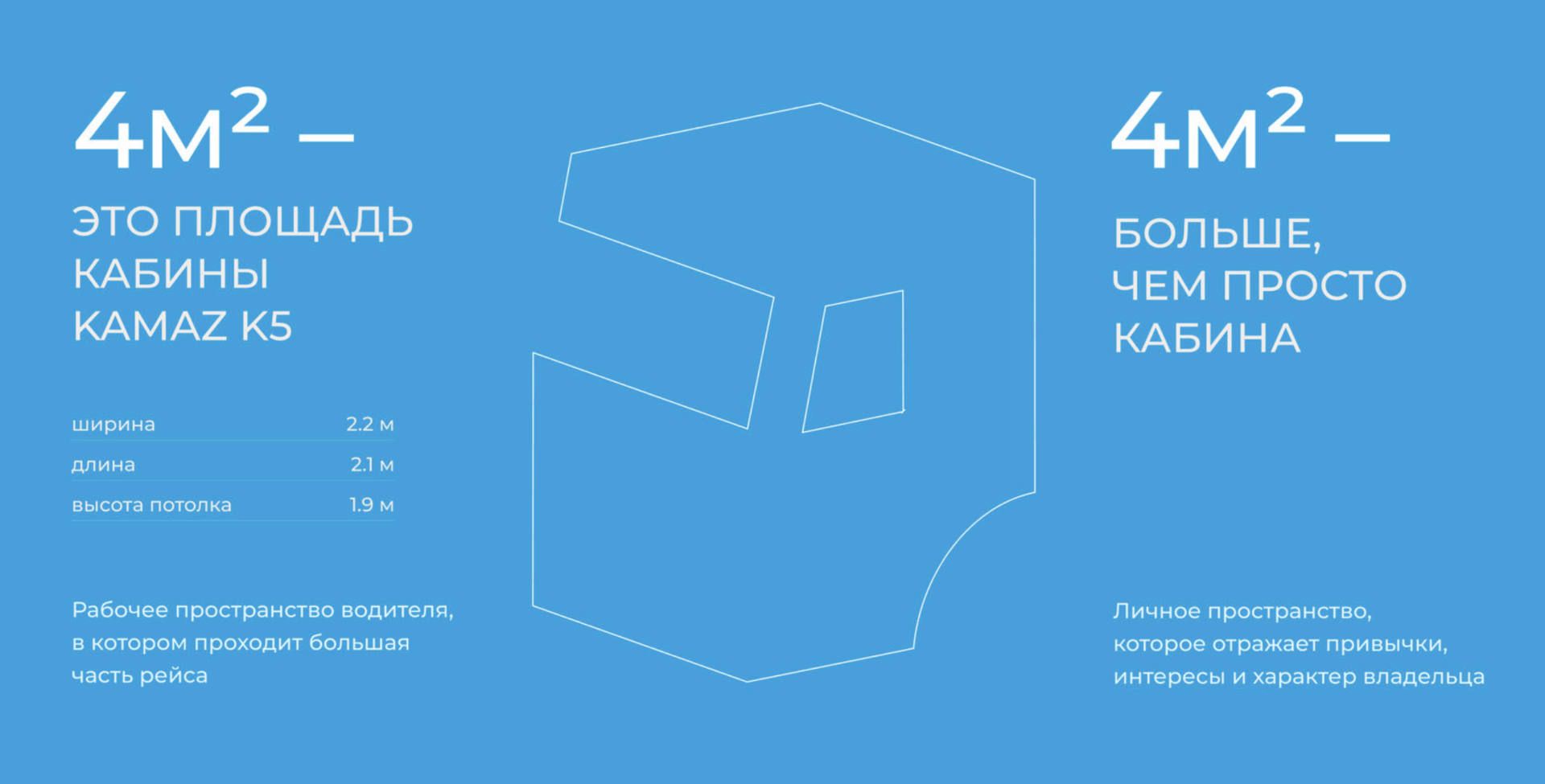 Грузовик – это рабочее место и дом для дальнобойщика, поэтому так важно, чтобы в нём было максимально уютно. В кабине КАМАЗ К5 – 4️⃣ квадратных метра. Это пространство может отражать привычки, интересы и характер владельца, уверены партнёры.