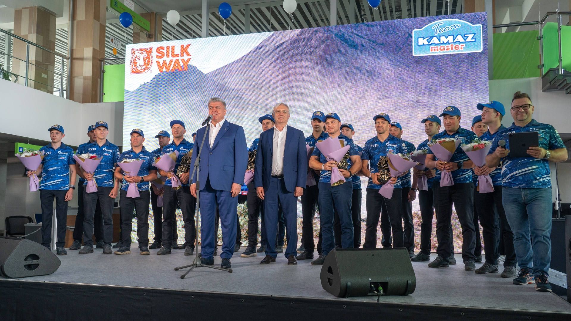 Гонщиков приветствовали и поздравили с победой в ралли «Шёлковый путь» генеральный директор «КАМАЗа» Сергей Когогин, мэр города Набережные Челны Наиль Магдеев, родные, друзья и преданные болельщики. К слову, для «Синей армады» этот день стал двойным праздником: команде «КАМАЗ-мастер» 17 июля исполнилось 36 лет.
