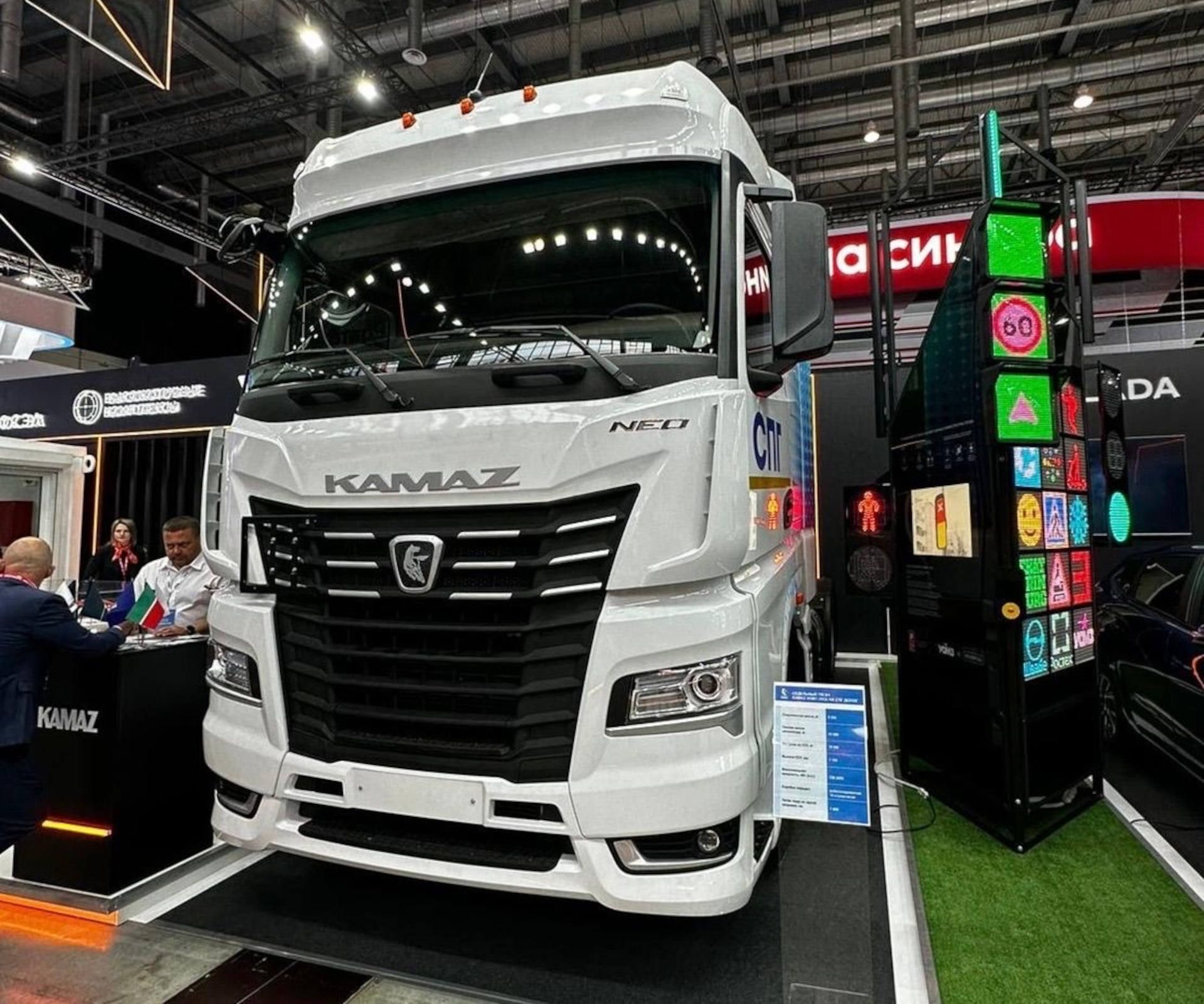 В экспозиции компании демонстрируется седельный тягач из новейшей линейки поколения К5 КАМАЗ-54901 (4х2), работающий на сжиженном природном газе. Машина отвечает требованиям ДОПОГ, что позволяет перевозить опасные грузы. Это газомоторная версия хорошо известного флагмана поколения К5, за короткий срок завоевавшего доверие потребителей.