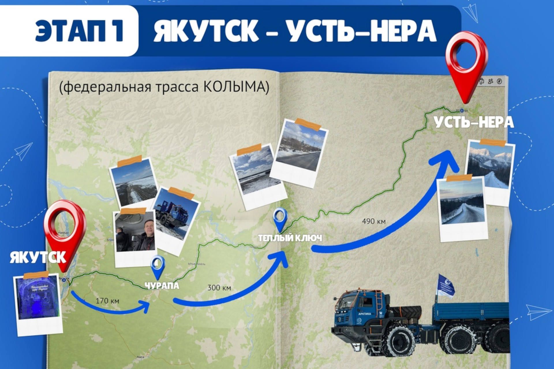 Экипаж Ильнура Галимянова успешно преодолел стартовый участок легендарного арктического маршрута Якутск — Певек, дойдя до Усть-Неры.