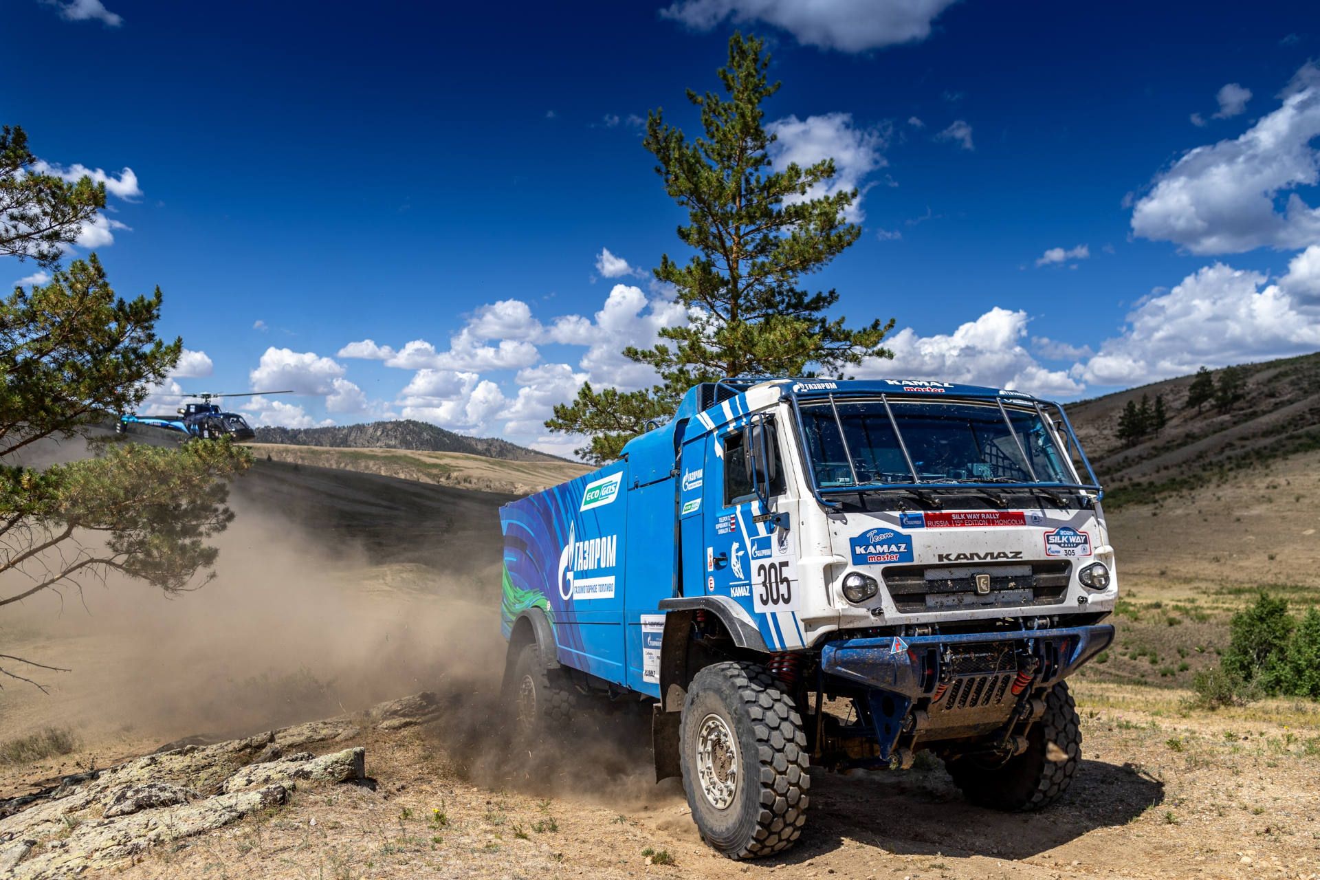 Антон Шибалов продолжает доказывать преимущества газодизельного КАМАЗа, ведь динамичный ход гонки изобиловал сменами направлений, требующими торможений и быстрого набора скорости, да и в целом проходил на высотах 1000-1700 метров над уровнем моря, где моторам порой уже не хватало кислорода: «День супер! Очень скоростной участок, но с опасными местами. Шли практически всё время на максималке, пересекали сухие русла. Машина ехала хорошо, не стояла. Газ работает, даёт нам мощность. Километров за 50 до финиша начало спускать колесо – нужно разобраться, что это. Эту часть участка ехали на подкачке, поэтому пришлось немножко сбросить темп, чтобы не потерять колесо. Но мы дотянули, двигаемся дальше. Нижнекамские шины нашего партнера Kama Tyres отлично ведут себя на скоростных участках. Интрига в классе хорошо закручена, это интересно и участникам, и зрителям. Развязка будет дальше».