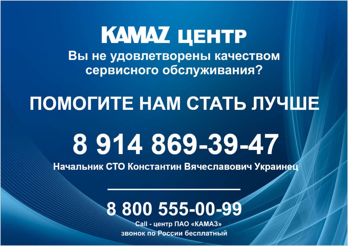 Рекламации по качеству автомобильной техники КАМАЗ не подлежат рассмотрению и претензии предприятием-изготовителем не удовлетворяются в случаях нарушения требований и рекомендаций, изложенных в «Руководстве по эксплуатации» и «Сервисной книжке».